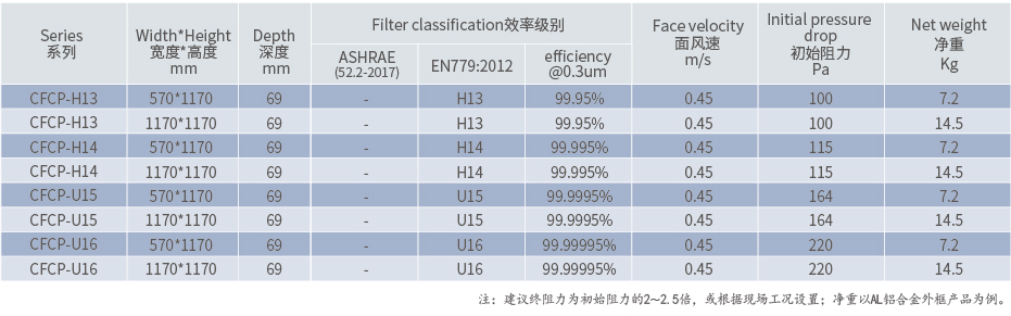 无隔板高效过滤器——CFCP是一款性能好的通风系统末端玻纤空气过滤器。适用于更高空气洁净等级的工业洁净室、手术室、实验室等末端过滤,如:高效送风口、FFU、层流工作台、无菌病房、机台设备等等。