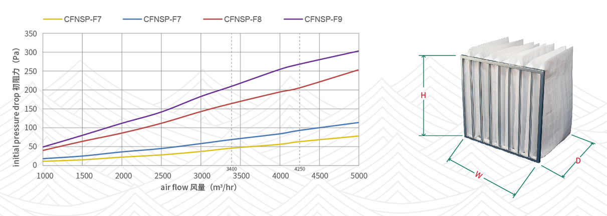 采用优质纳米合成纤维为原料,波纹结构设计,阻力比常规合成纤维更低,具有更大的容尘量;